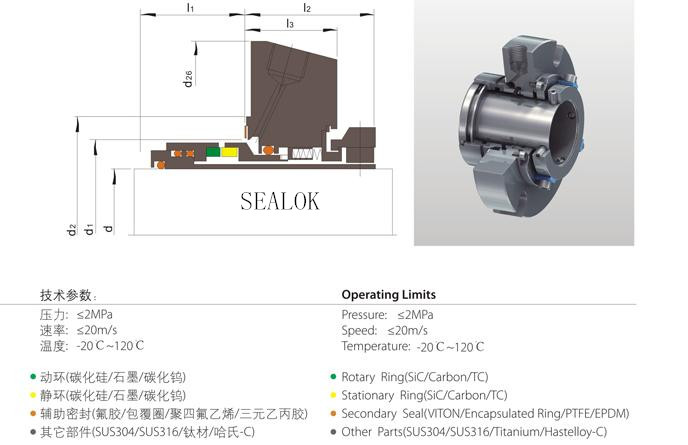 Rotary Ring (SiC/Carbon/TC) Stationary Ring (SiC/TC) Secondary Seal (VlTON/Encapsulated Ring/PTFE)