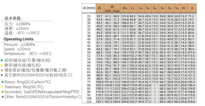 Rotary Ring (SiC/Carbon/TC) Stationary Ring (SiC/TC) Secondary Seal (VlTON/Encapsulated Ring/PTFE) |