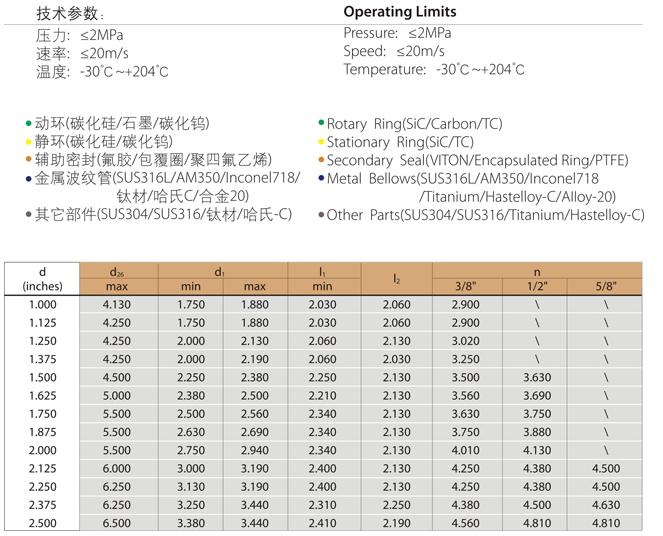 ≤20m/Sec Rotary Ring (SiC /Carbon/TC) Stationary Ring (SiC /TC) |
