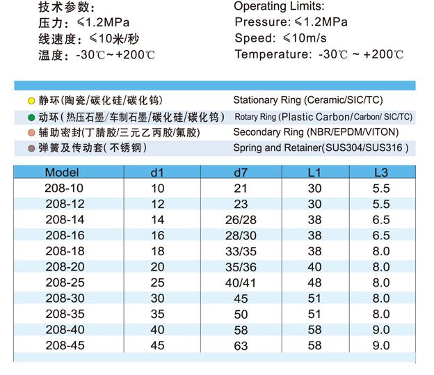 208 Single-Spring Mechanical Seal