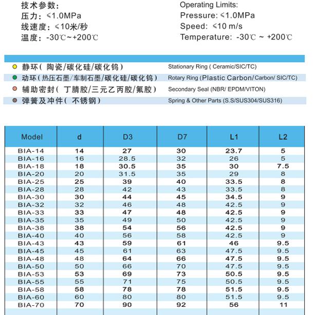 BIA Single-Spring Mechanical Seal